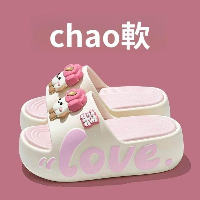 春夏新款5cm厚底拖鞋女可愛卡通外穿增高時尚EVA防滑沙灘雙拼工藝