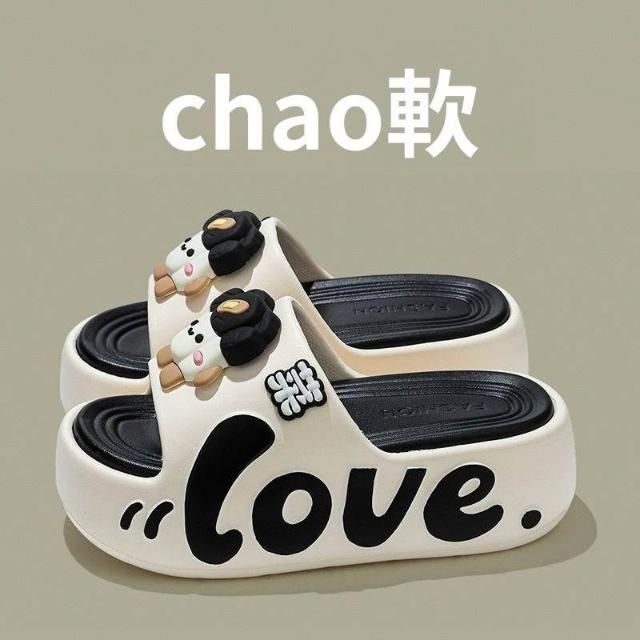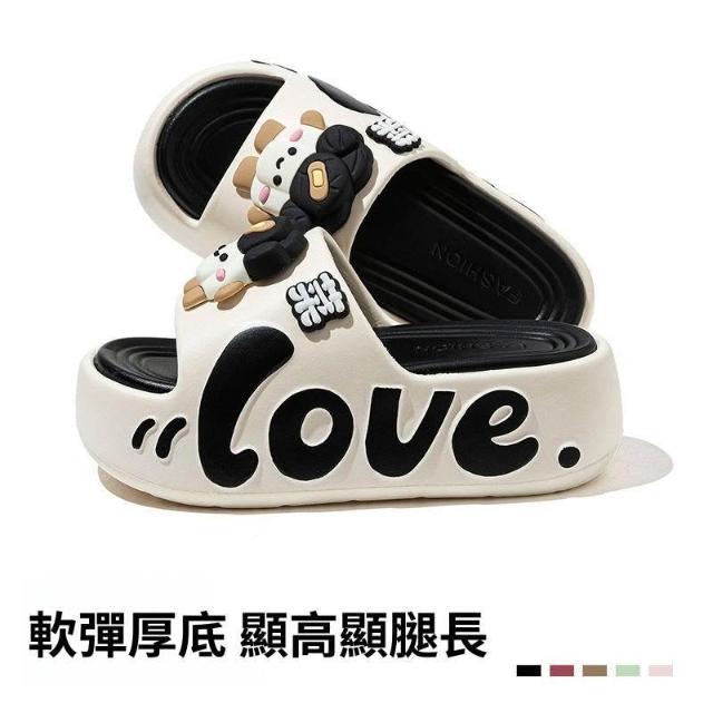 春夏新款5cm厚底拖鞋女可愛卡通外穿增高時尚EVA防滑沙灘雙拼工藝
