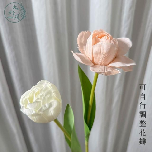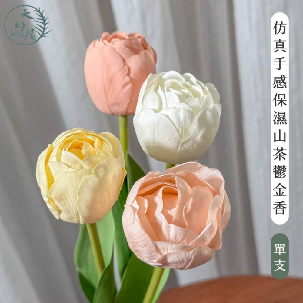 大好屋仿真花 現貨 仿真手感保濕山茶鬱金香 單支 鬱金香 人造花 假花 山茶花 拍照道具
