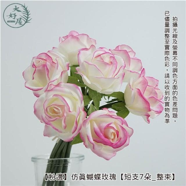 大好屋仿真花 現貨 仿真蝴蝶玫瑰 7支一束 手感花瓣 擬真玫瑰 假花 人造花 仿真玫瑰 拍照道具 擬真花