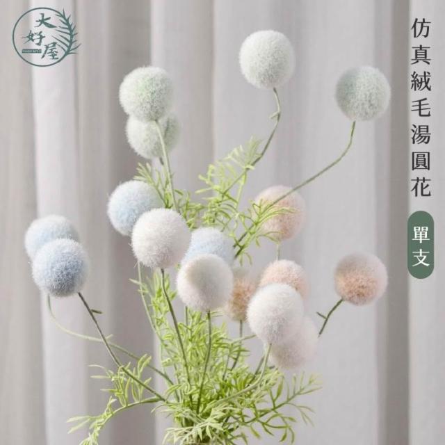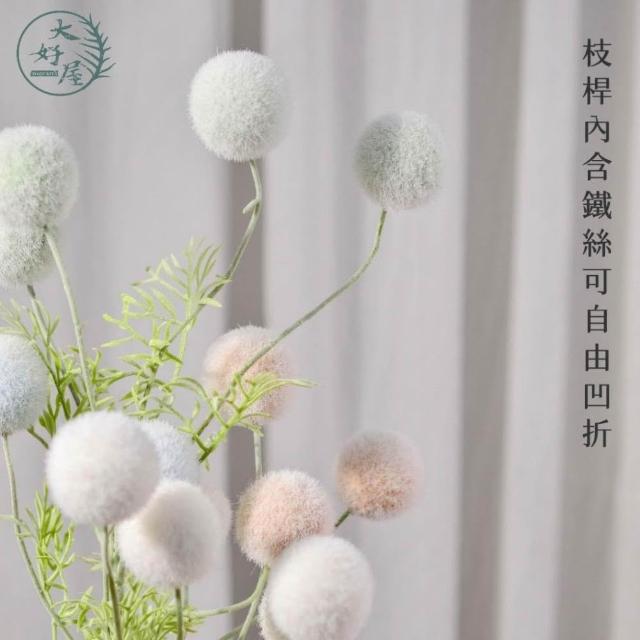 大好屋 現貨仿真花 花束 拍照道具 佈置 居家裝飾 仿真絨毛湯圓花 毛絨球 雪球花 單支 球球花 櫥窗佈置 花藝設計