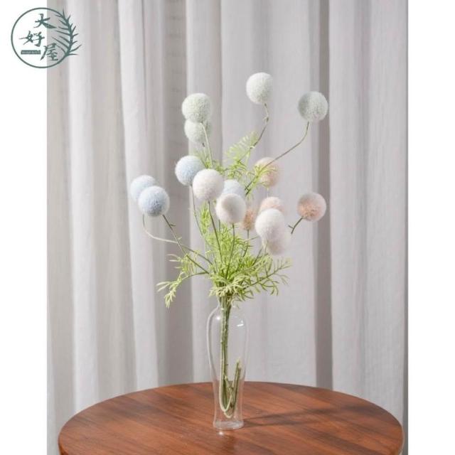 大好屋 現貨仿真花 花束 拍照道具 佈置 居家裝飾 仿真絨毛湯圓花 毛絨球 雪球花 單支 球球花 櫥窗佈置 花藝設計
