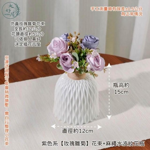 大好屋仿真花 現貨 仿真花束花瓶組 玫瑰花束 套組 居家布置 拍照道具 花瓶 塑膠花瓶 餐桌花瓶 仿真花 假花 人造花