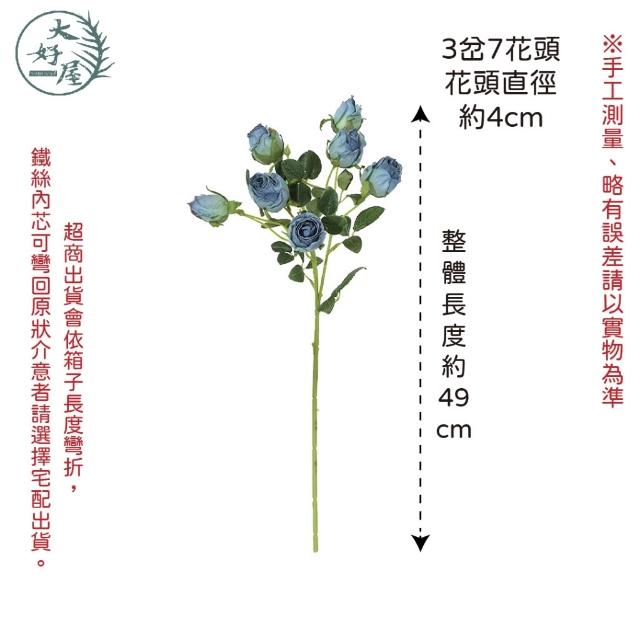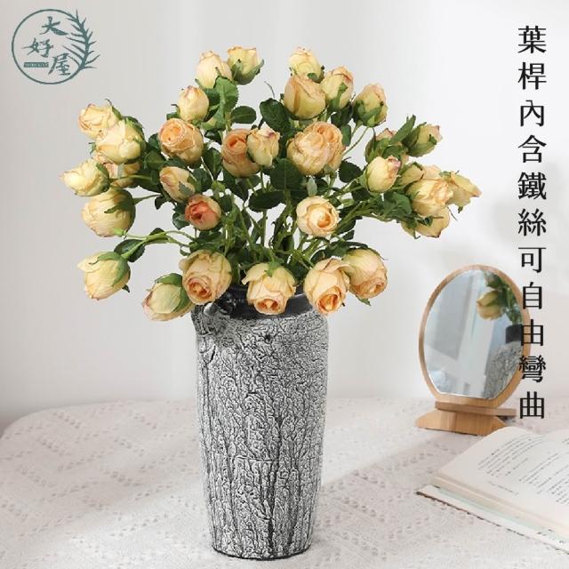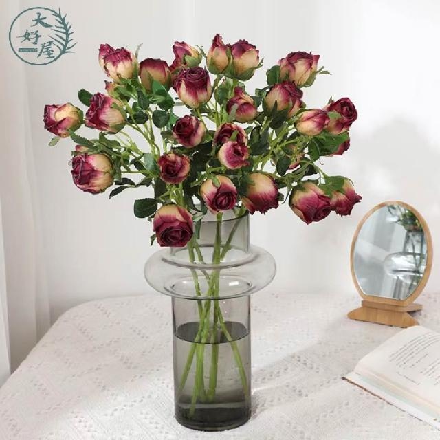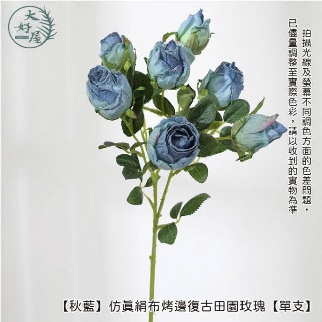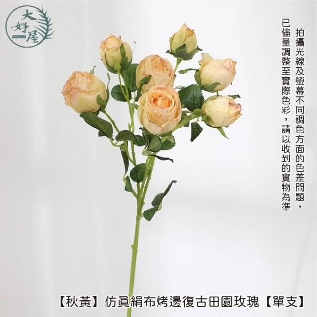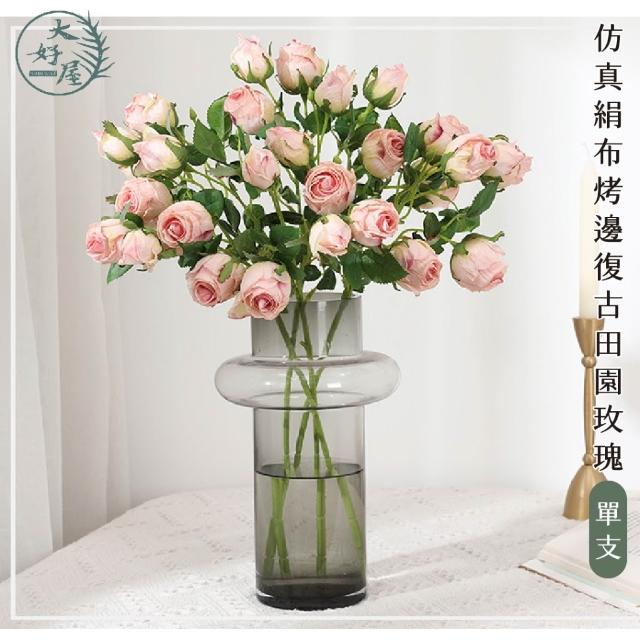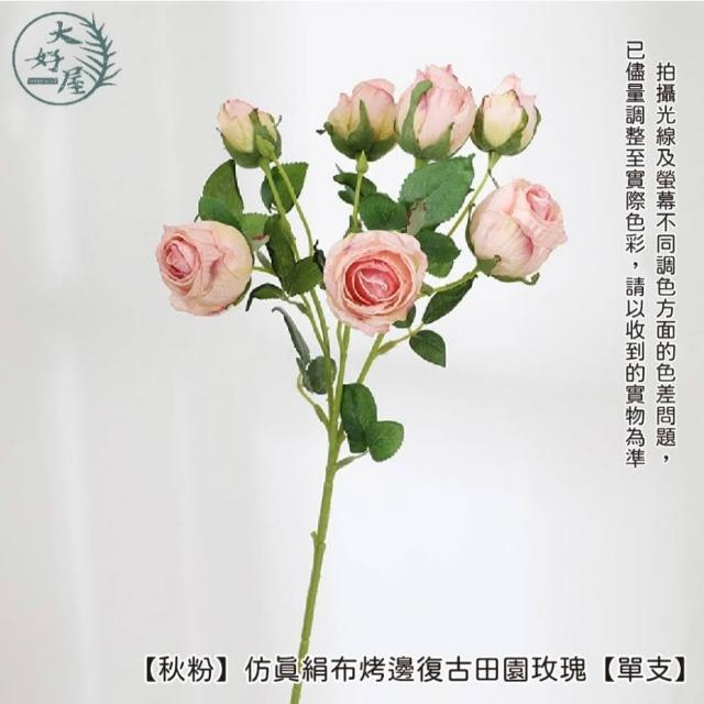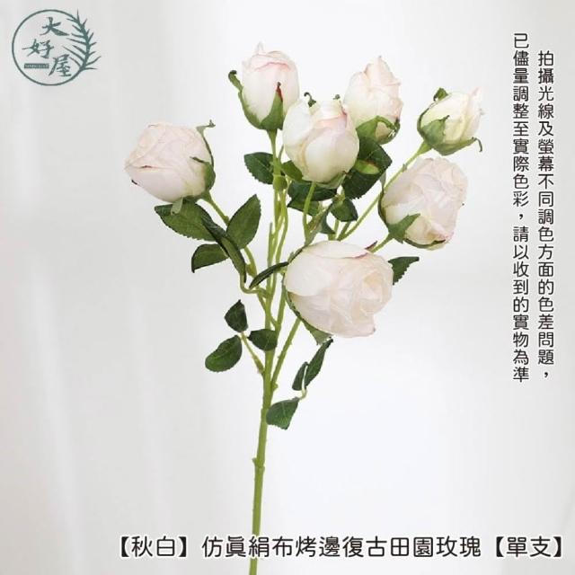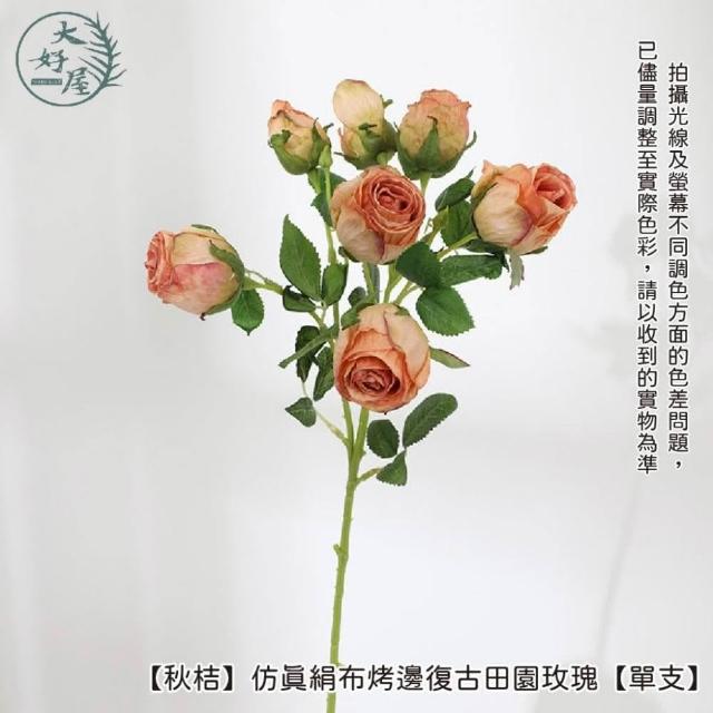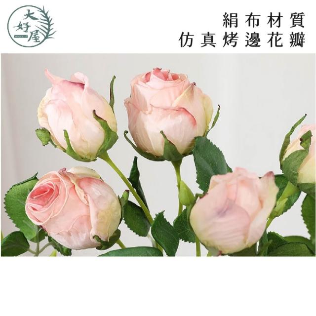 大好屋仿真花 現貨 仿真絹布烤邊復古田園玫瑰 單支7頭 仿真小玫瑰 擬真玫瑰 人造花 烤邊玫瑰 拍照道具 佈景 造景