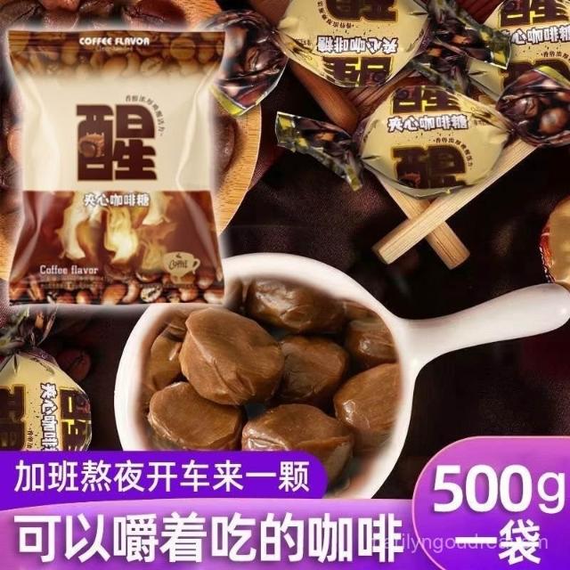 文文甄選 新品爆漿咖啡糖獨立小包裝夾心特濃咖啡味流心糖果