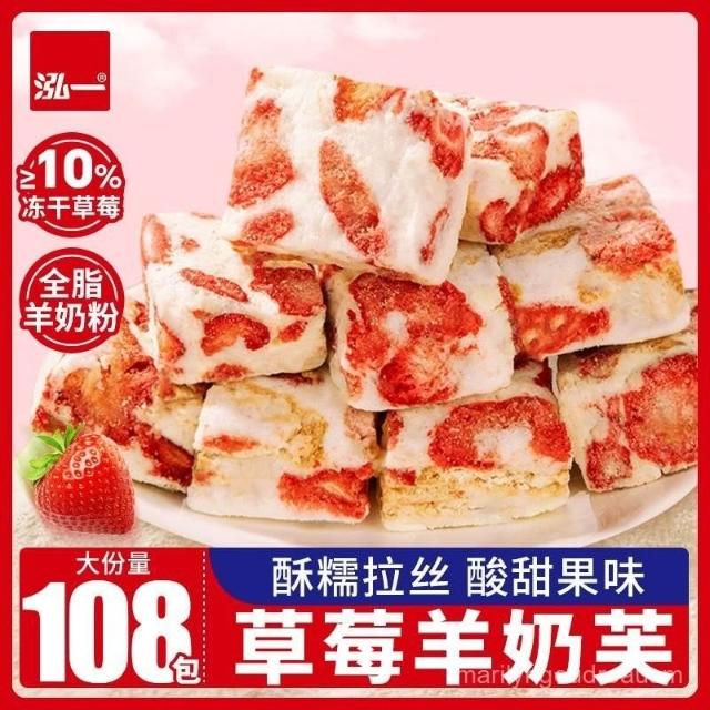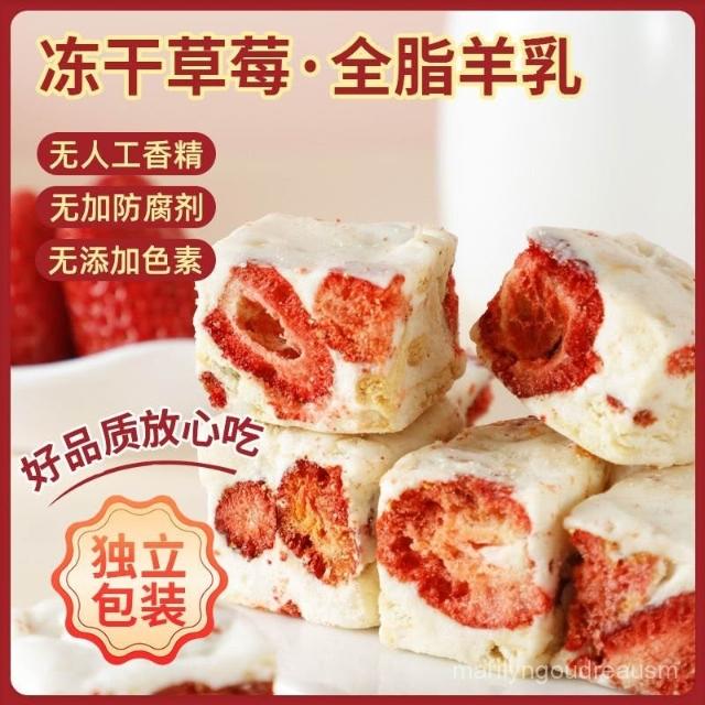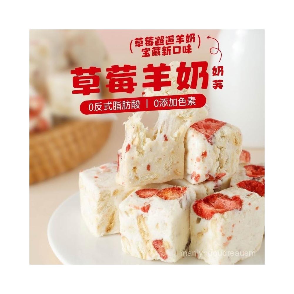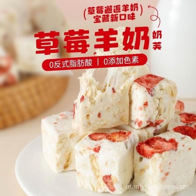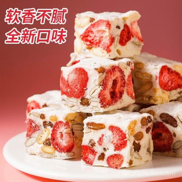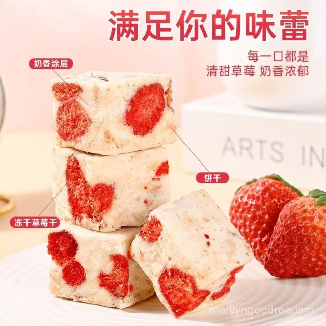 文文甄選 草莓羊奶芙奶香雪花酥牛軋糖喜糖果解饞休閒糕點甜品小零食品