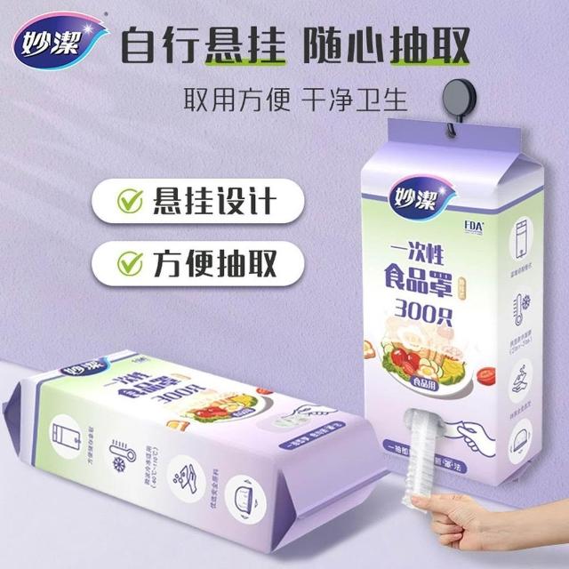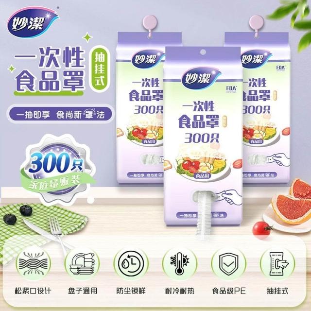 甄選好物妙潔抽掛式一次性保鮮罩食品級300只 膜套 廚房冰箱冷藏鬆緊碗蓋