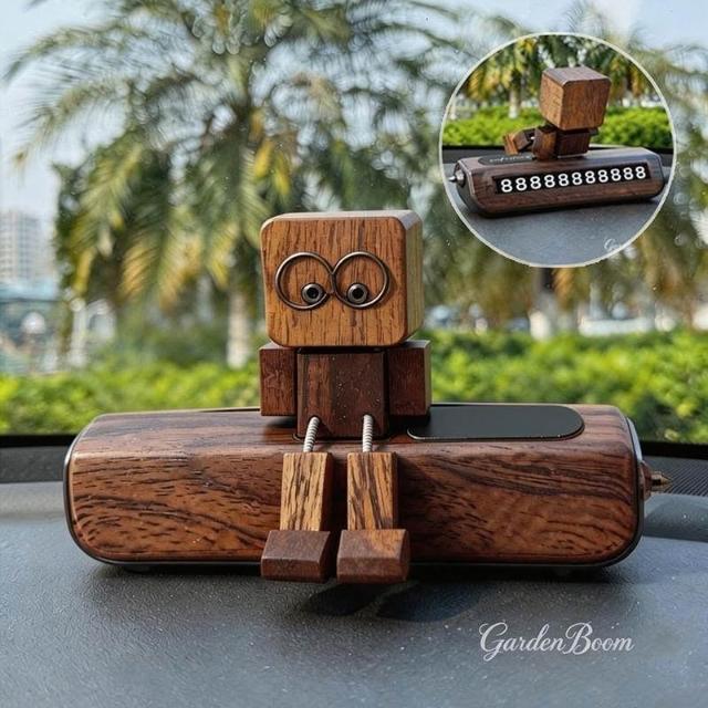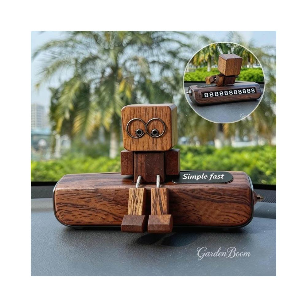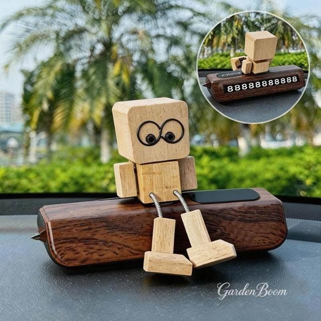 玖品甄選【新品】抖腿木頭人挪車電話牌臨時停車號碼牌高級汽車載擺件裝飾