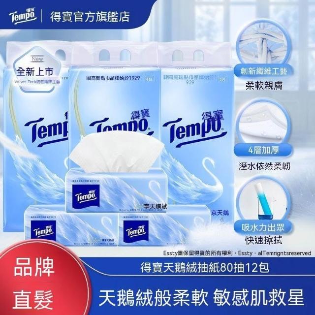 玖品甄選得寶Velvet天鵝絨軟抽紙4/12大包厚實4層呵護敏感肌高端面巾紙DB