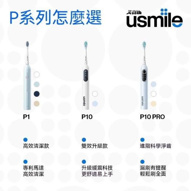 玖品甄選【usmile】笑容加電動牙刷P10PRO智能圓屏四區漏刷提醒聲波配牙膏