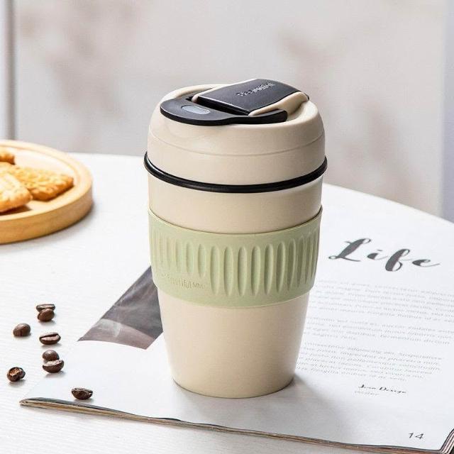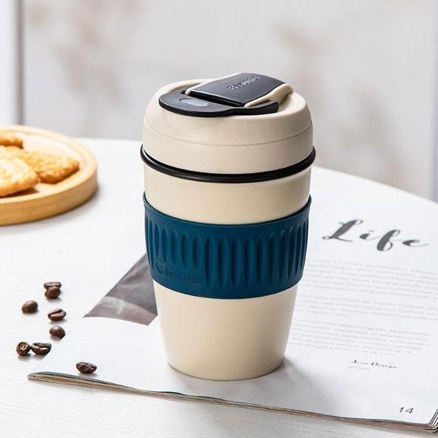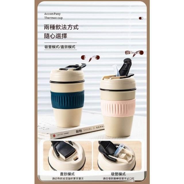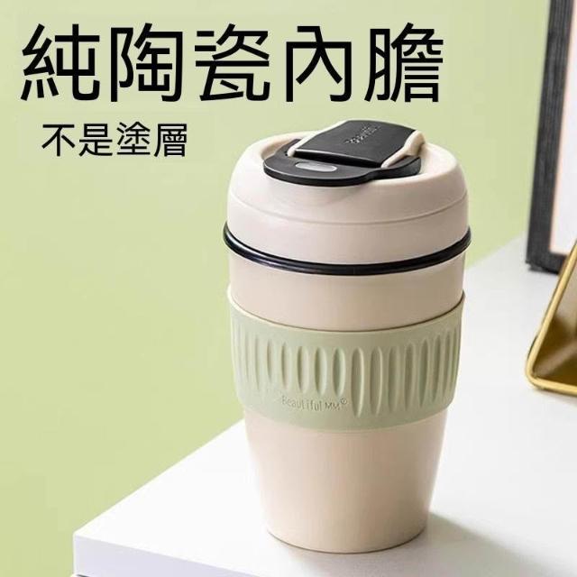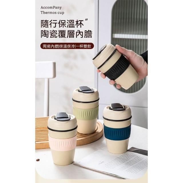 玖品甄選純陶瓷內膽保溫杯便攜式車載隨行咖啡杯帶蓋高顏值小巧雙飲吸管杯