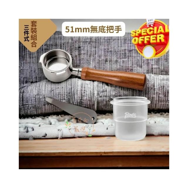 無底把手 51MM 把手+接粉杯+粉碗拆除器 套裝組合 不鏽鋼 實木把手 咖啡手柄 喜奈而