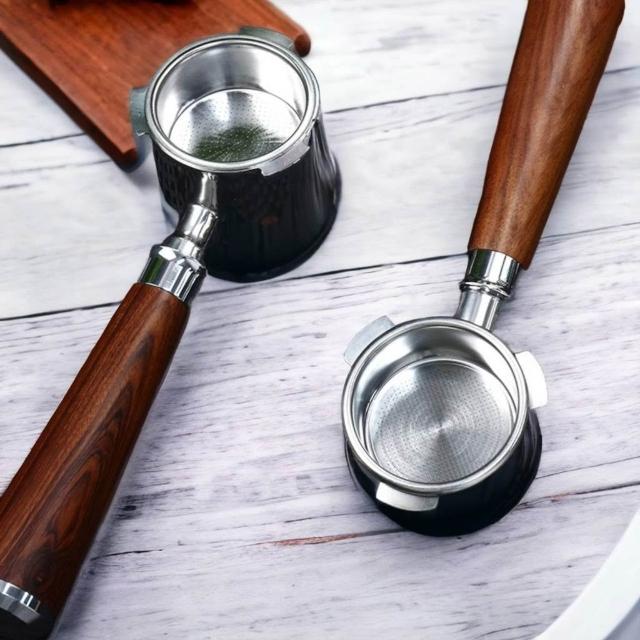 無底把手 意式咖啡機手柄 51MM 三耳 不鏽鋼 實木手柄 咖啡機把手改裝 咖啡器具配件 喜奈而
