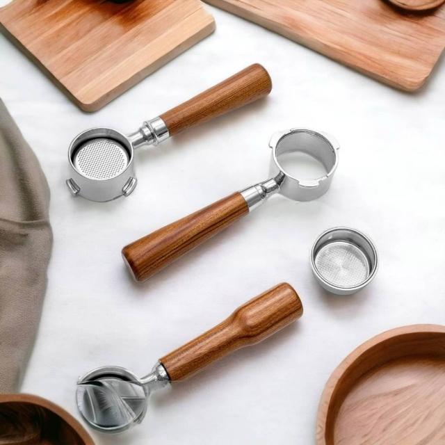 無底把手 意式咖啡機手柄 51MM 三耳 不鏽鋼 實木手柄 咖啡機把手改裝 咖啡器具配件 喜奈而