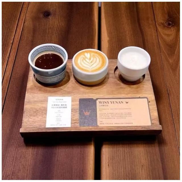 喜奈而 咖啡托盤 三孔木盤 木質咖啡展示盤 精品咖啡比賽杯測托盤 咖啡廳擺盤 三杯咖啡托盤 拉花展示盤