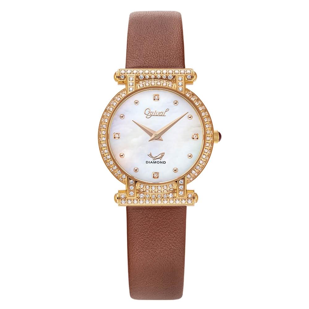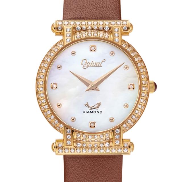 Ogival 愛其華Ogival 愛其華 星空禮讚 氣質精鑽淑女腕錶 (380-52DLR) 白母貝咖啡皮帶