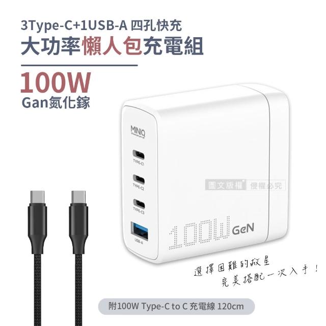mini Q100W氮化鎵GaN 大功率懶人包快速充電組 四孔快充頭+雙Type-C線