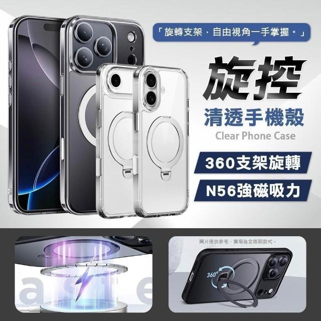 旋控 iPhone 17 Pro Max 360°磁吸支架清透保護殼 氣囊防摔手機殼(透明)