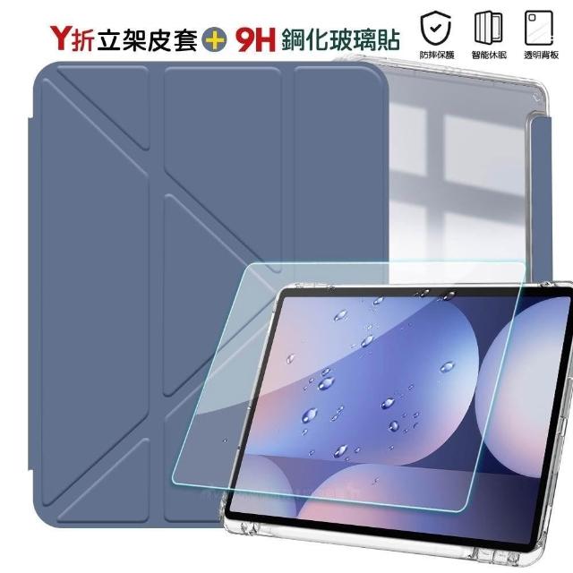 VXTRA軍事防摔級 三星 Galaxy Tab S10+/S9+ 12.4吋 Y折晶透背蓋立架皮套+9H玻璃貼