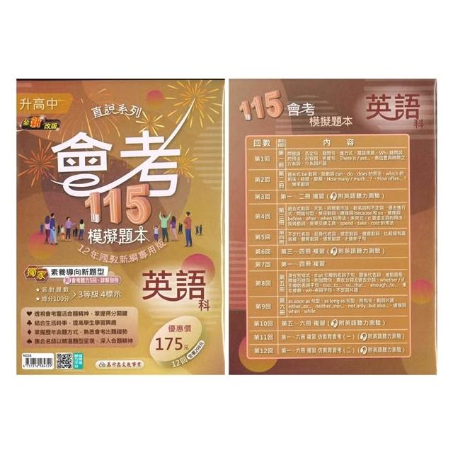 《高升鑫出版》國中_直說_會考模擬題本_國文/英語/數學/自然/社會_適用115會考∞品閣文化