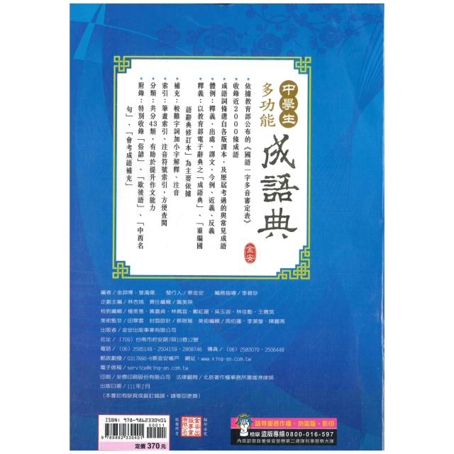 金安《金安出版》國中_中學生多功能成語典∞品閣文化