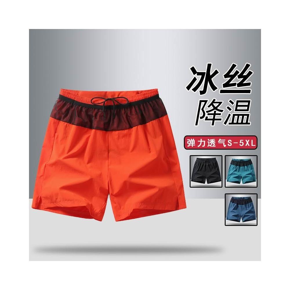 冰絲透氣短褲男 排汗短褲 男休閒短褲 夏天透氣運動短褲 慢跑短褲 顯瘦鬆緊短褲 涼感運動褲 速乾五分褲 男運動短褲
