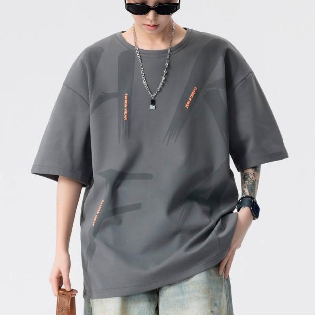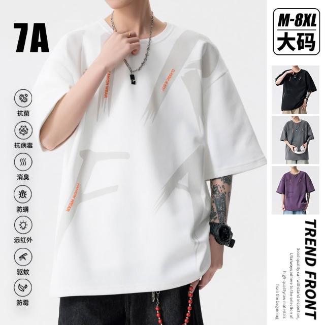 M-8XL大尺碼短袖 美式寬鬆短袖上衣 休閒透氣短袖上衣 潮流帥氣 青少年 大學t 短袖 美式寬鬆字母印花 短袖上衣男