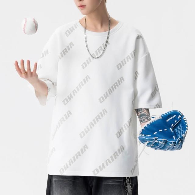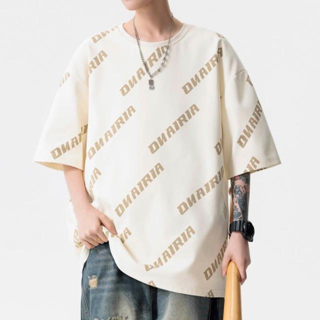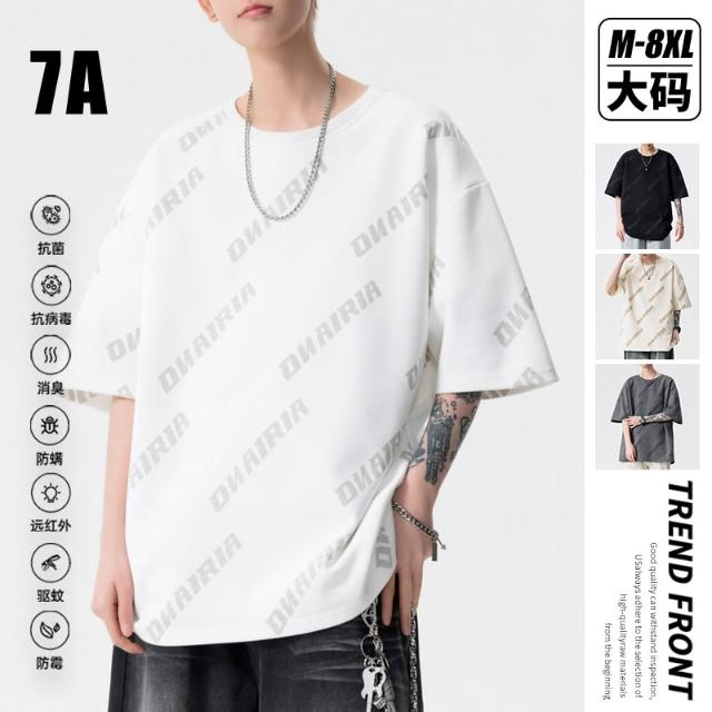 M-8XL大尺碼短袖 美式寬鬆短袖上衣 休閒透氣短袖上衣 潮流帥氣 青少年 大學t 短袖 時尚字母印花百搭 短袖上衣男
