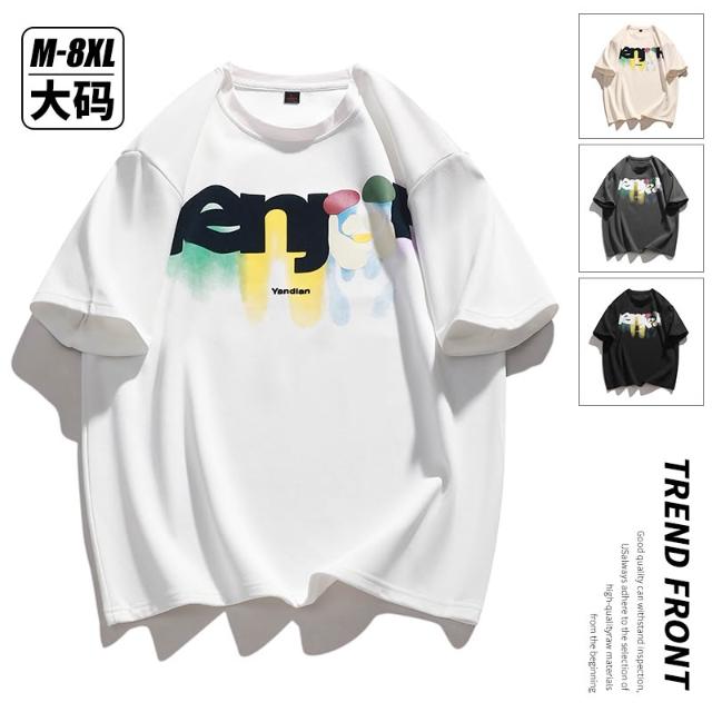 M-8XL大尺碼短袖 美式寬鬆短袖上衣 休閒透氣運動上衣 圓領寬鬆百搭 潮流帥氣 青少年 大學t 短袖 男 短袖上衣男