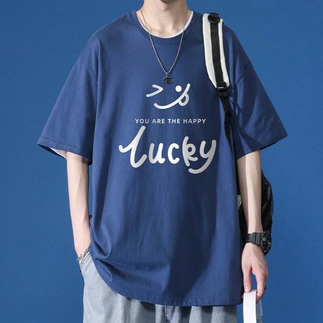 寬鬆短袖上衣 純棉T恤 潮流短袖T 純棉印花短袖男 男短袖t恤 休閒五分袖 大學t 短袖 男 印花短袖上衣 短袖TEE