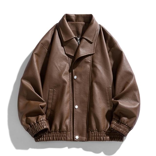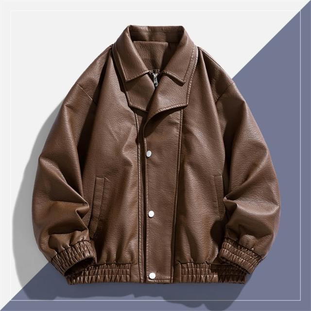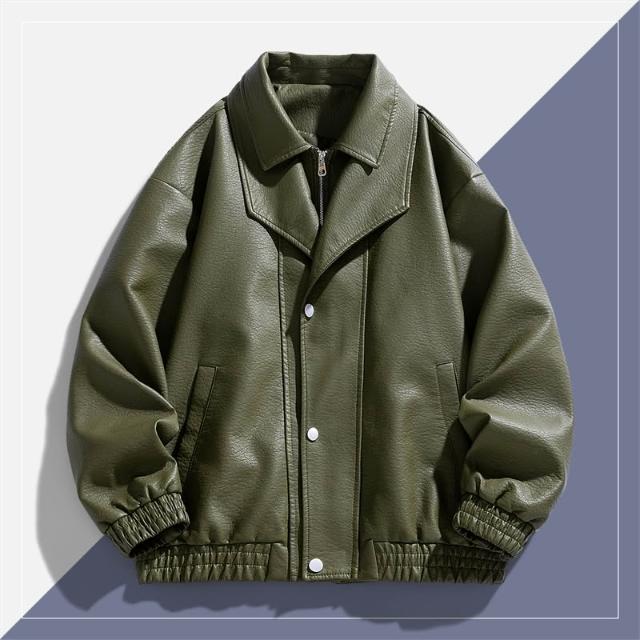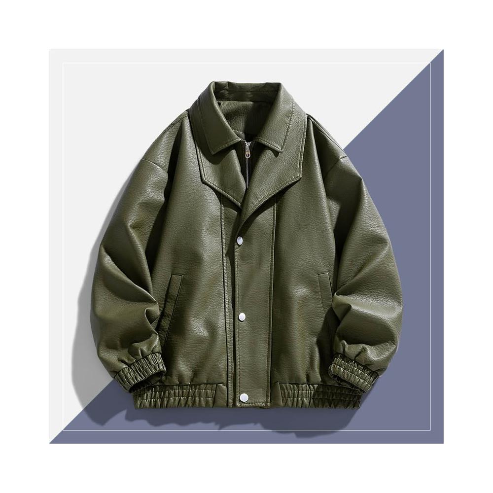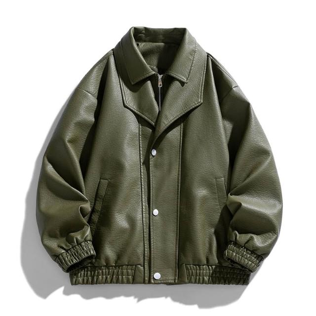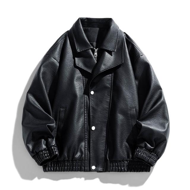 皮衣夾克衫男士春秋季棒球服立領外套薄款秋季新款男士美式潮牌機車服簡約百搭立領皮衣休閒寬鬆飛行夾克外套薄外套男棒球領皮夾克