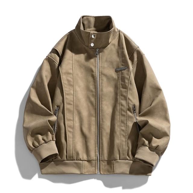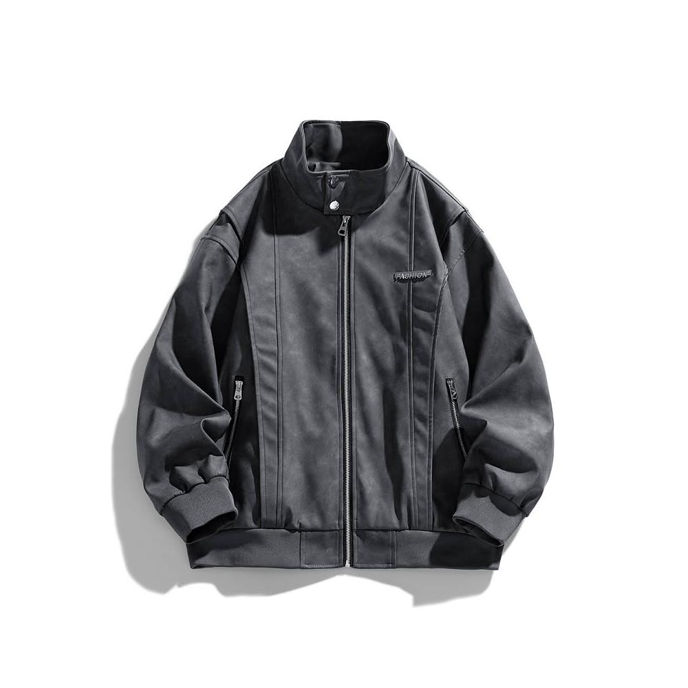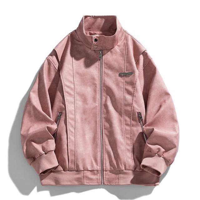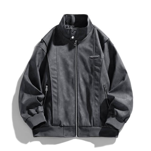 美式機車棒球服水洗皮衣外套男款機車皮夾克男皮衣男外套撞色賽車服外套男港風潮牌季情侶款寬鬆外套翻領寬鬆飛行員皮衣潮外套