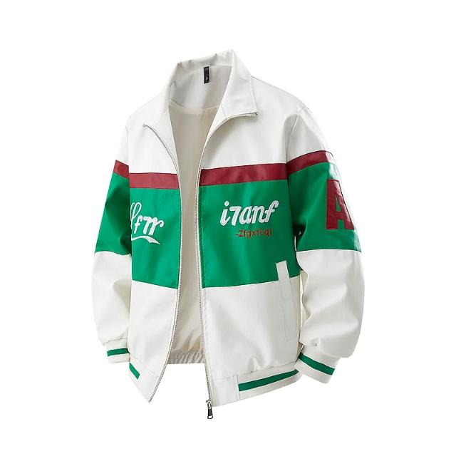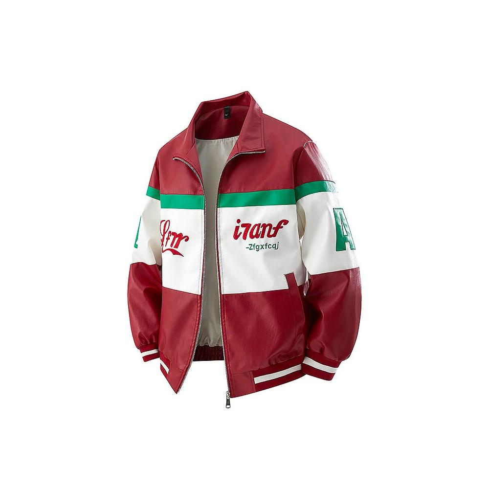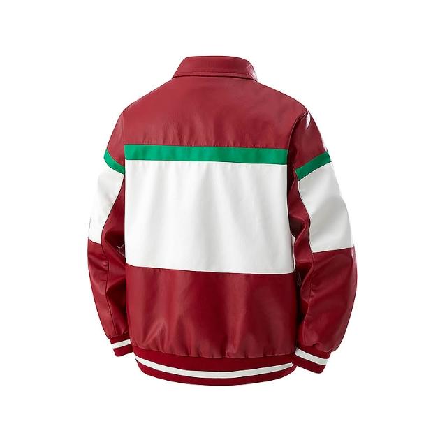 美式插色棒球服夾克外套 春秋季潮牌寬鬆百搭棒球外套 時尚拼色皮衣男休閒皮夾克 港風痞帥休閒情侶機車外套寬鬆飛行防風夾克外