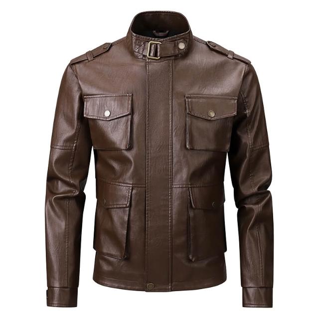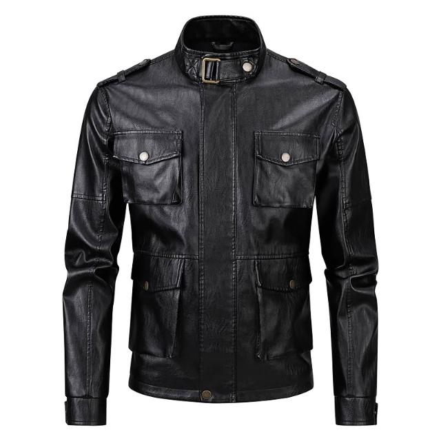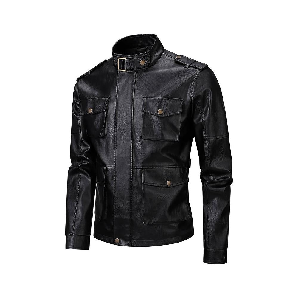 美式復古賽車服夾克外套男 秋季潮流帥氣寬鬆機車防風金属扣夾克外套 中年寬鬆立領飛行外套皮夹克 時尚休閒防風上衣夾克男