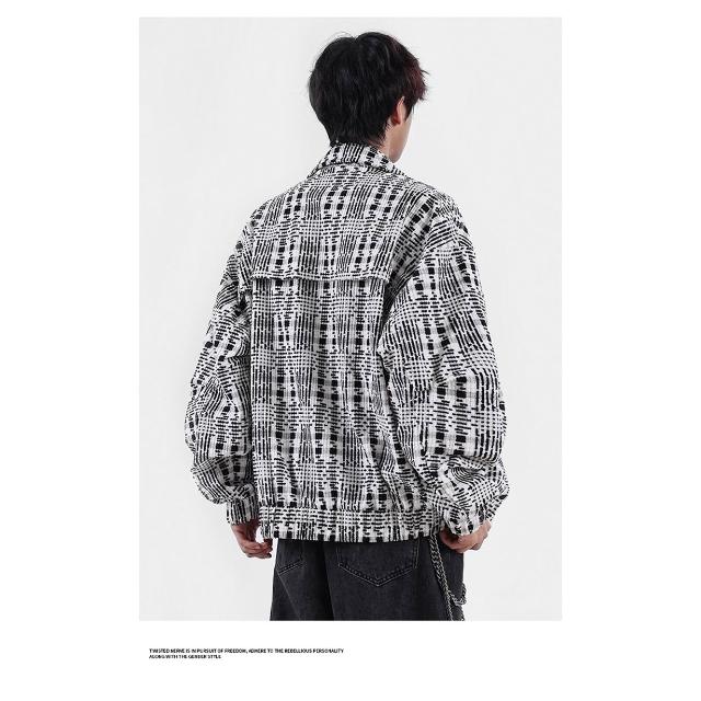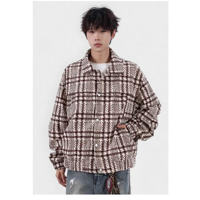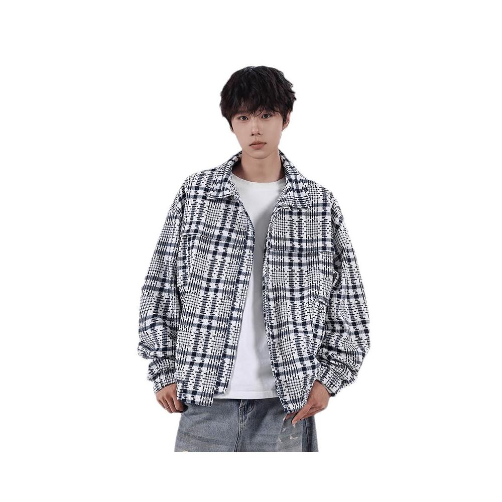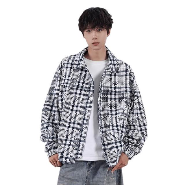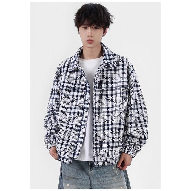 美式棒球領休閒外套夾克外套男 青少年潮牌工裝夾克格子休閒外套夾克男 潮流寬鬆百搭衣服ins港風痞帥情侶加厚襯衫外套夾克男