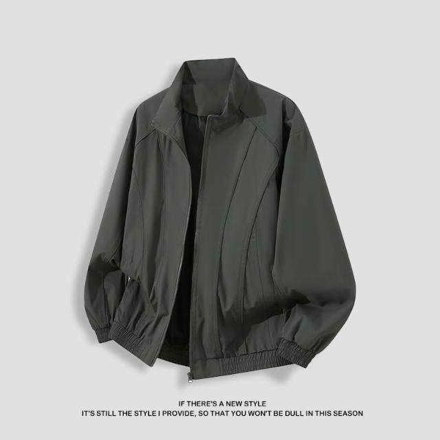 夾克外套戶外立領輕薄款衝鋒衣男防風休閒夾克外套 青少年潮牌飛行休閒外套夾克男 潮流寬鬆百搭衣服 ins 港風痞帥情侶夾克