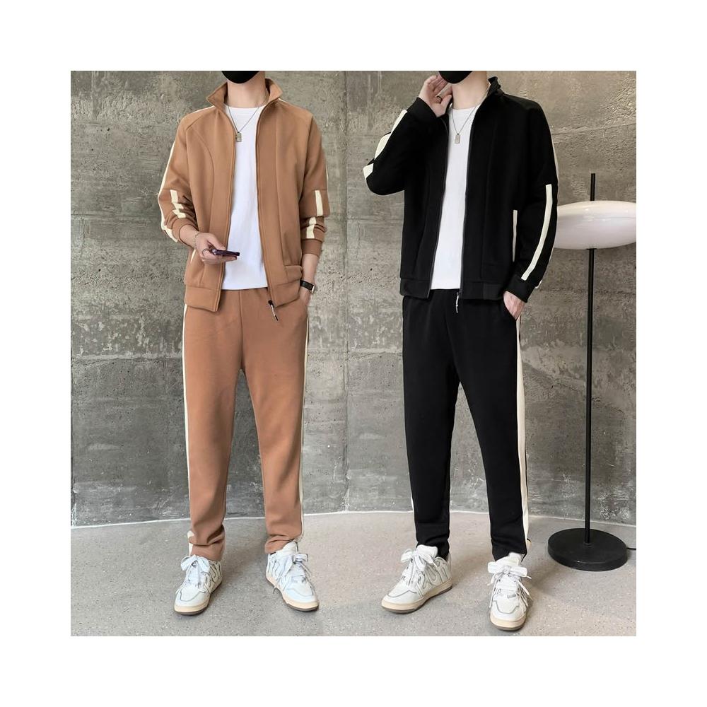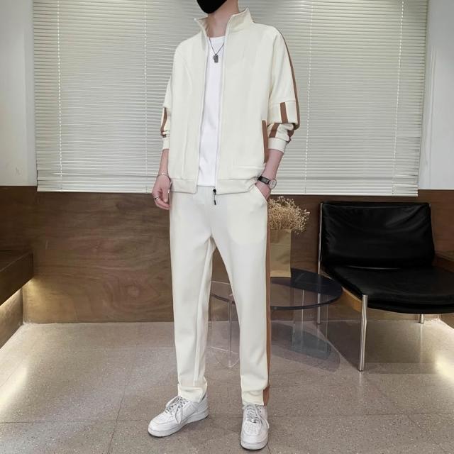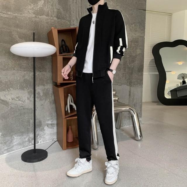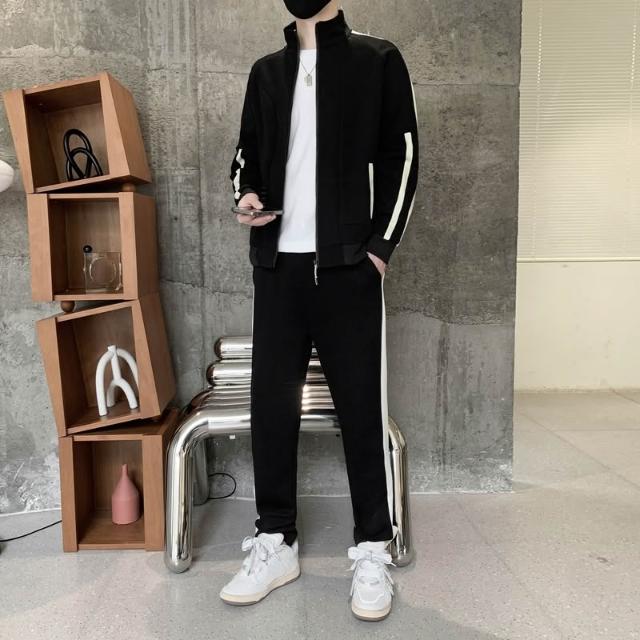 開衫長褲兩件套外套男開衫運動套裝 男女情侶款休閒運動套裝青少年立領兩件套 春秋季潮流帥氣韓版休閒運動套裝休閒束口褲