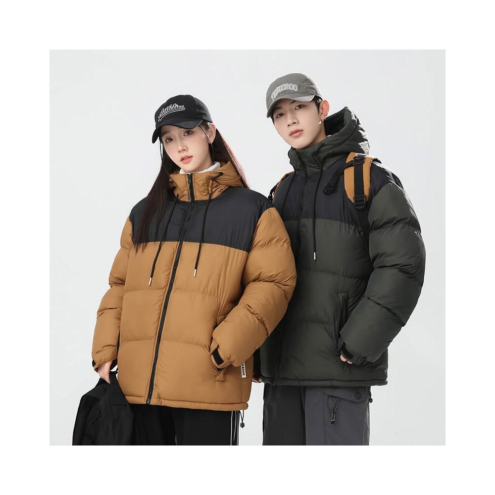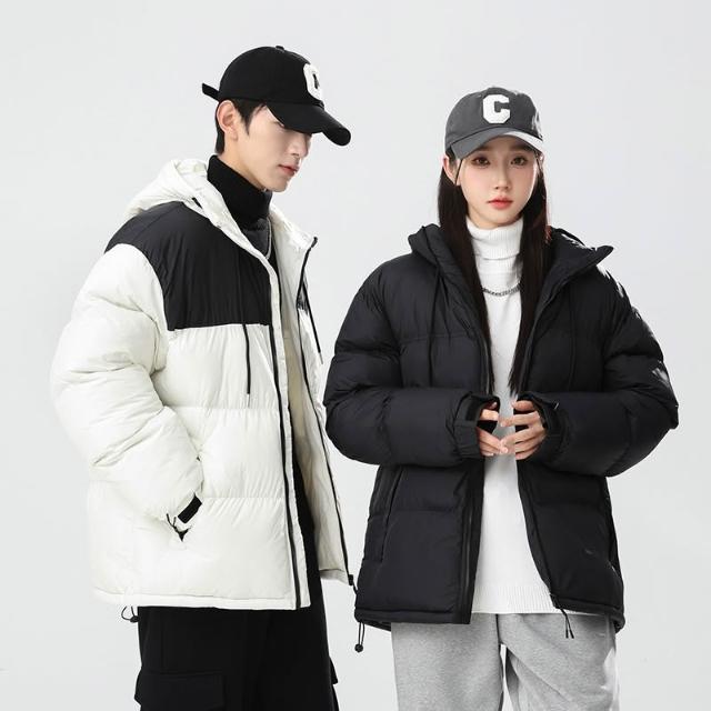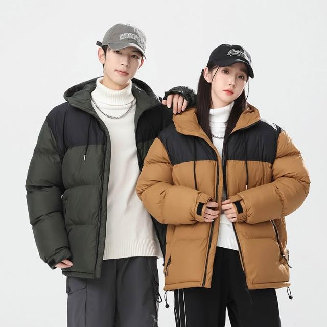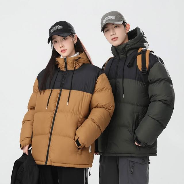棉服外套情侶韓版連帽面包服 男女同款保暖防風連帽棉服外套 秋冬加厚夾克面包服外套 青少年休閒百搭潮流面包服外套保暖棉衣