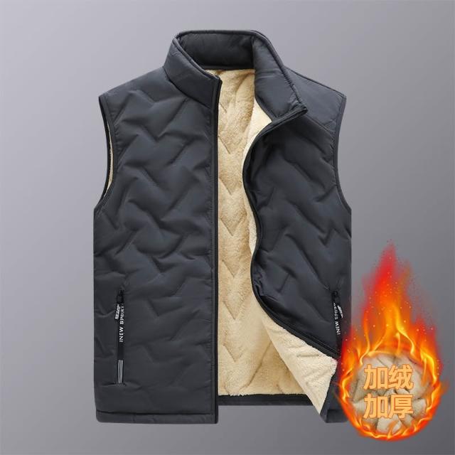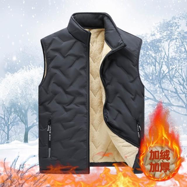大尺碼背心外套羊羔絨加絨加厚背心馬甲外套男 秋冬刷毛戶外釣魚服背心外套 羊羔絨保暖加絨外套保暖馬甲男上衣防風背心馬甲