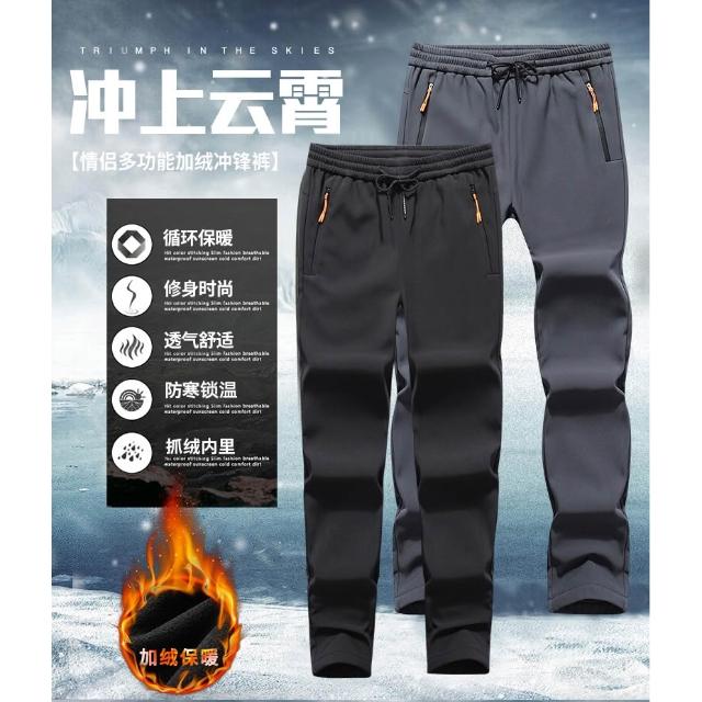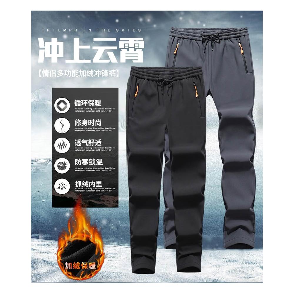 工裝長褲男女同款休閒刷毛衝鋒長褲 防風防潑水加絨保暖防寒衝鋒褲 男女同款防風防潑水登山長褲 戶外寬鬆防刮耐磨衝鋒褲