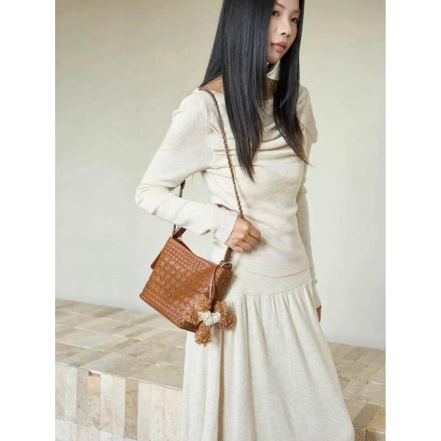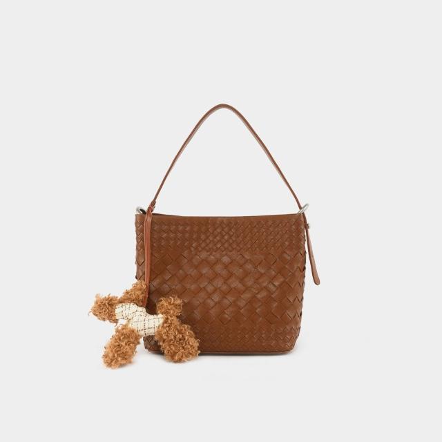 秋季新款編織水桶包黑色手提單肩百搭高級感托特包