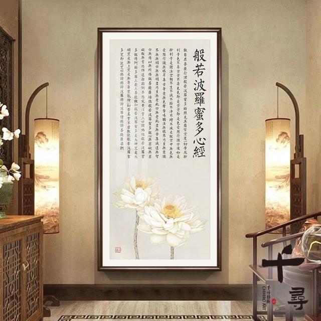 荷花蓮花心經 實木框心經掛畫 大悲咒裝飾畫 佛堂供奉壁畫 茶室書房墻畫 觀音經文字畫 楞嚴咒掛畫