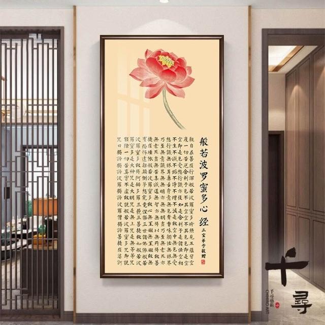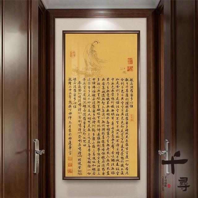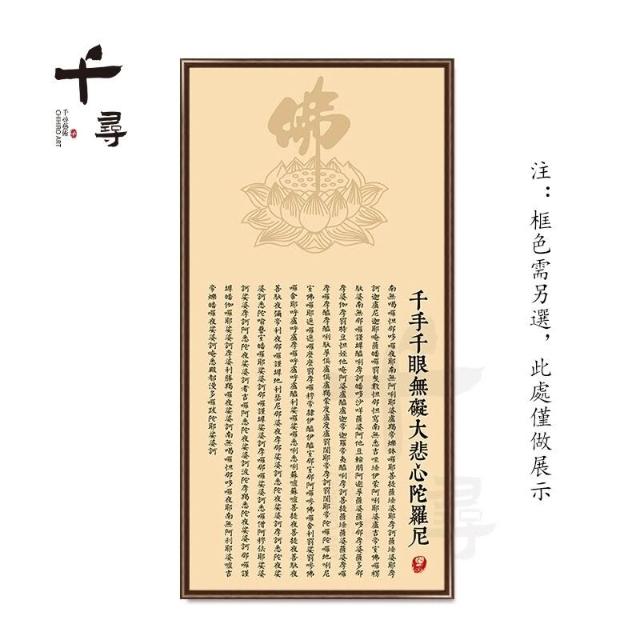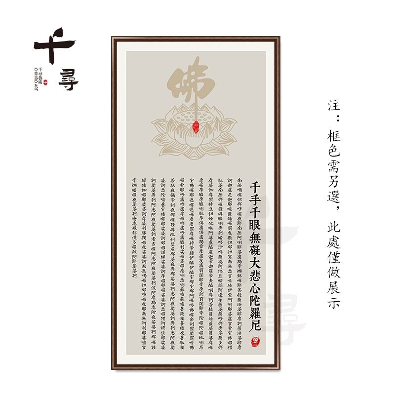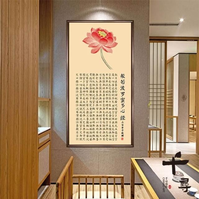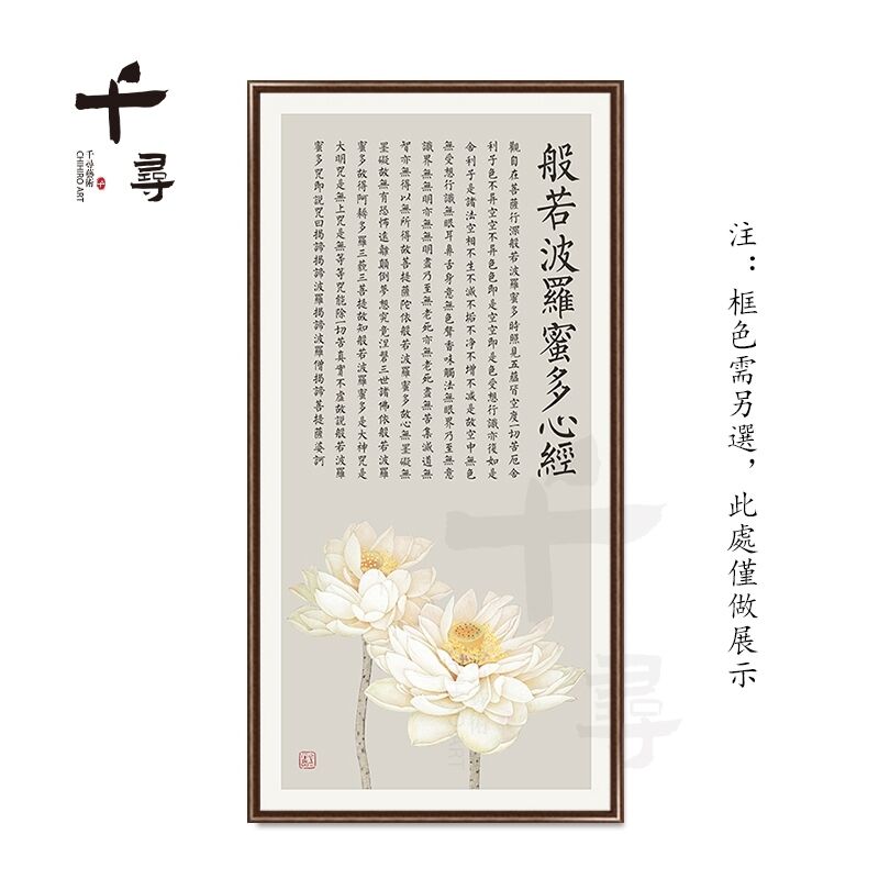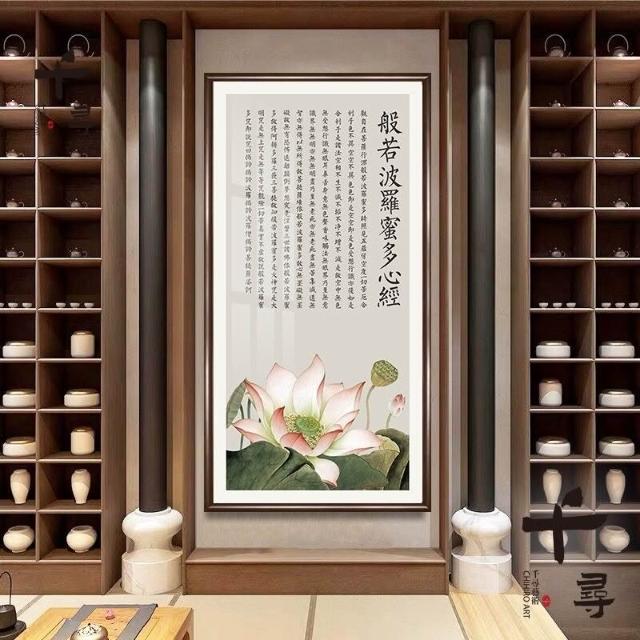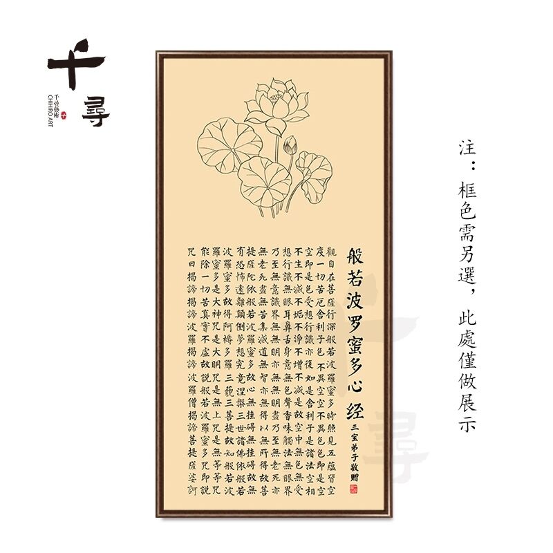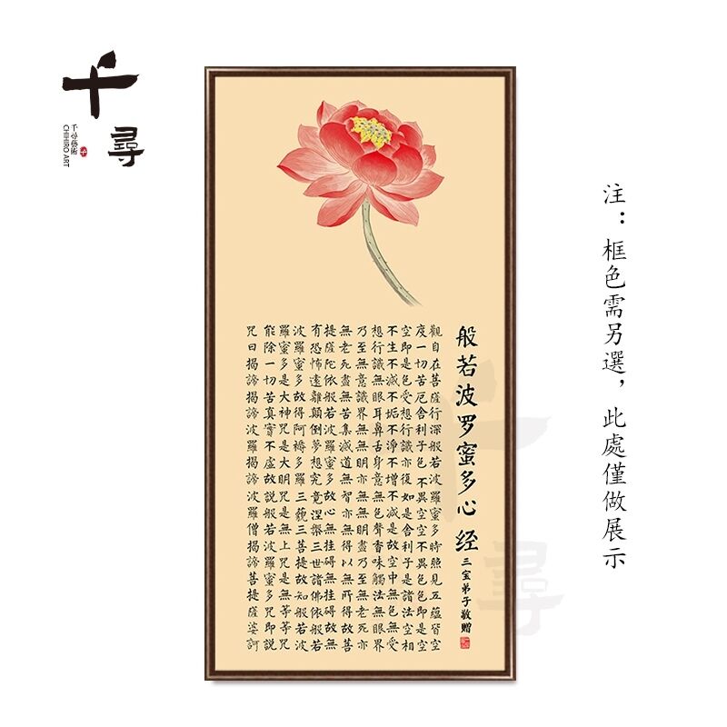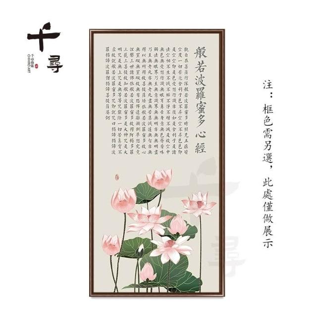 荷花蓮花心經 實木框心經掛畫 大悲咒裝飾畫 佛堂供奉壁畫 茶室書房墻畫 觀音經文字畫 楞嚴咒掛畫