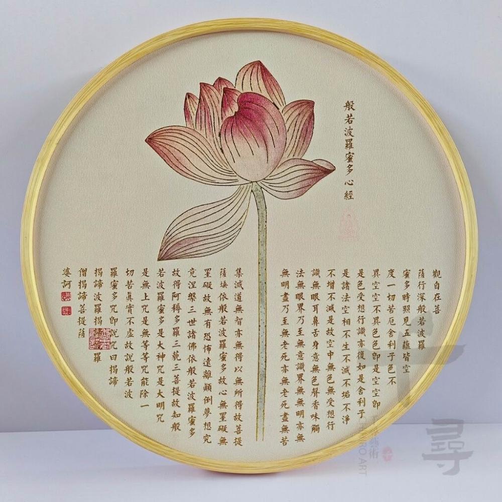 浮雕心經掛畫 佛堂茶室 牌位供奉壁畫 實木框 立體圖案 荷花 蓮花 乾隆心經 大悲咒 般若波羅蜜多心經裝飾畫