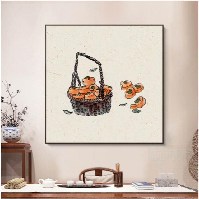 書法畫 字畫 柿柿如意裝飾畫 新中式禪意背景掛畫 春華秋實書房字畫 日式餐廳壁畫
