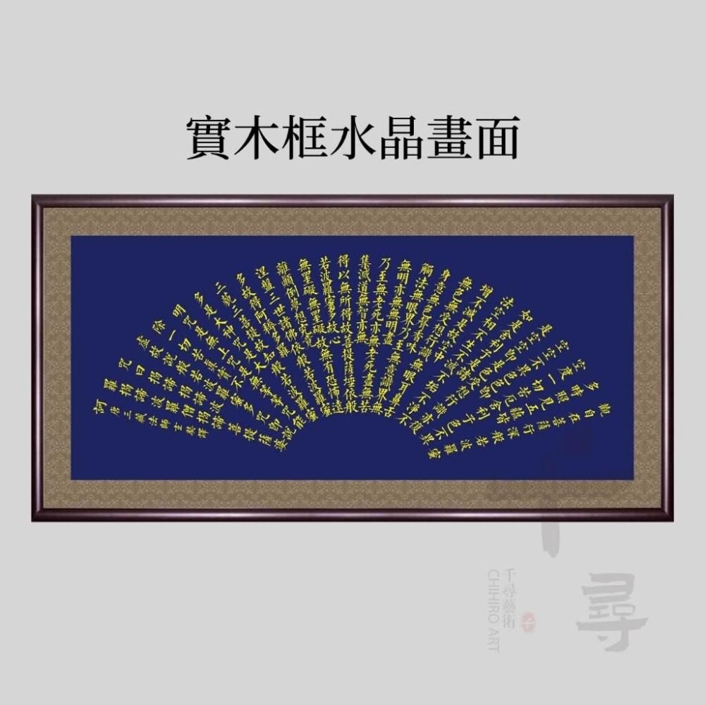 心經掛畫 實木框扇形心經裝飾畫 玄關沙發背景墻壁畫 佛堂茶室書房墻畫 供奉 祖先牌位壁畫