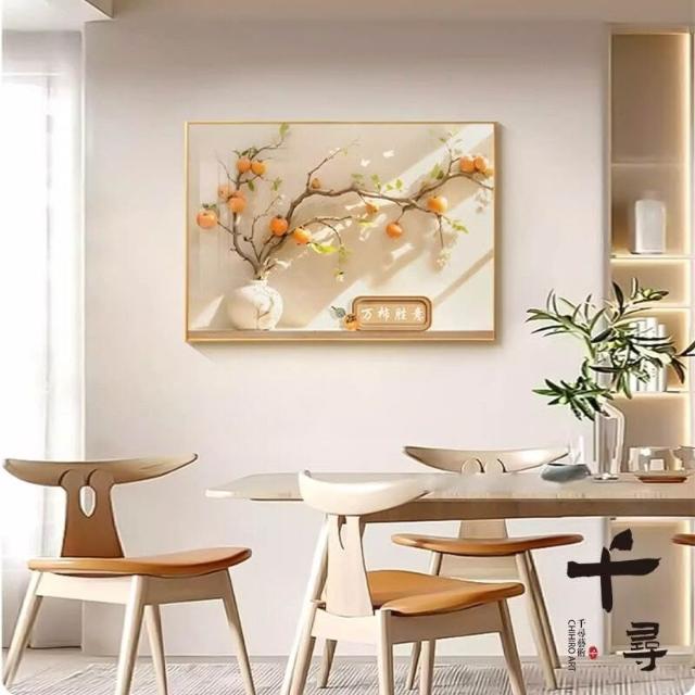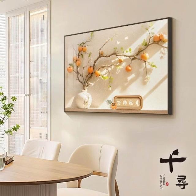 原木風餐廳裝飾畫 柿柿如意飯廳掛畫 寓意好客廳餐桌背景牆單幅壁畫