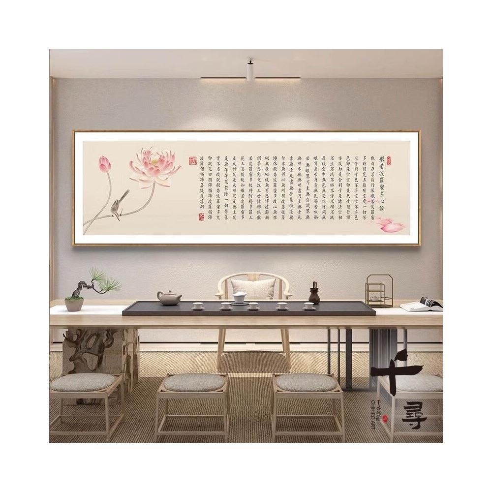 心經字畫 般若波羅蜜多心經壁畫 臥室床頭畫 茶室佛堂禪意墻畫 荷花 蓮花心經 辦公室裝飾畫