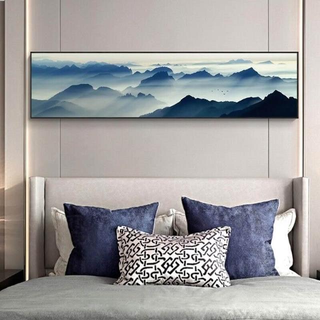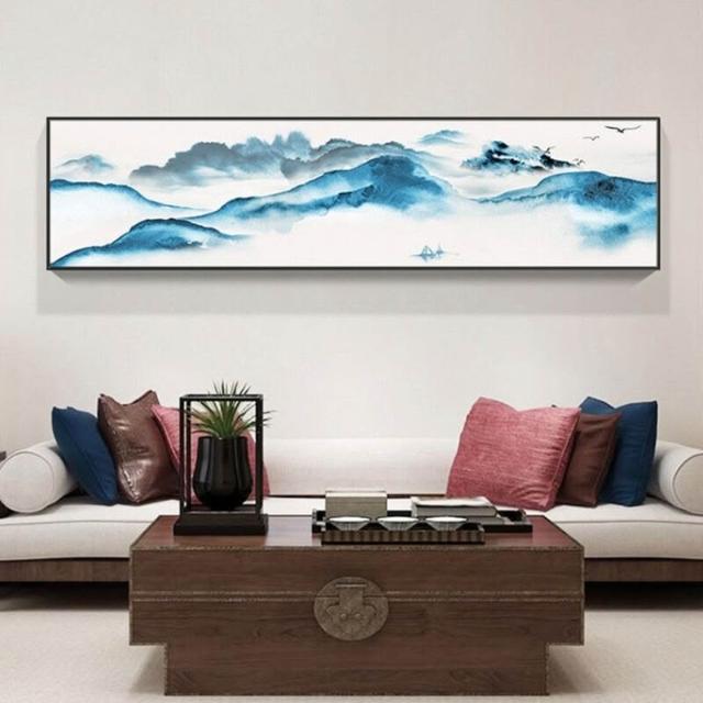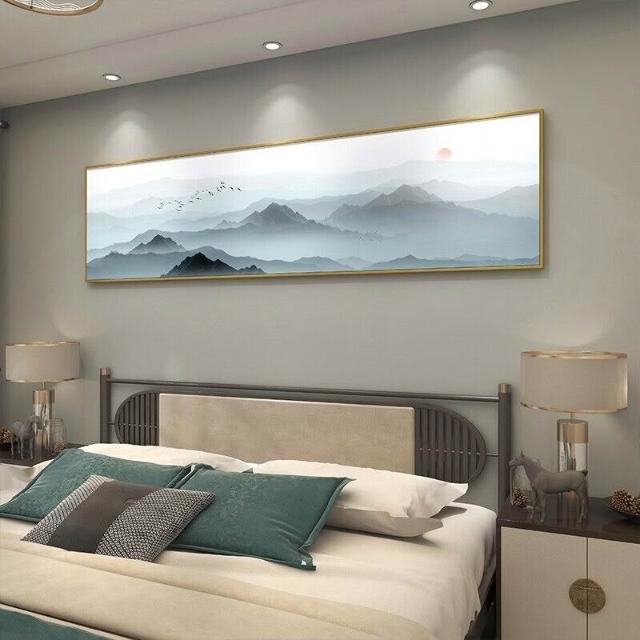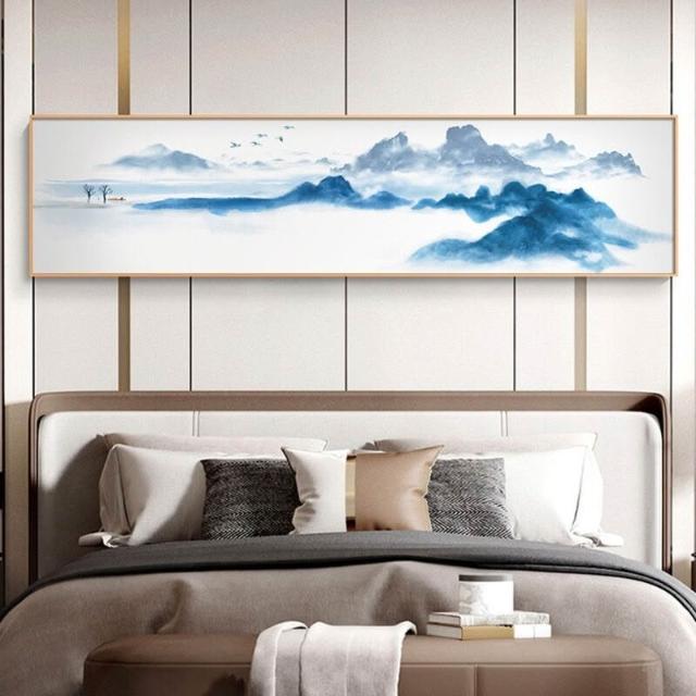 中式臥室床頭水墨裝飾畫 新中式禪意書房客廳掛畫 酒店客房壁畫 橫式山水風景畫