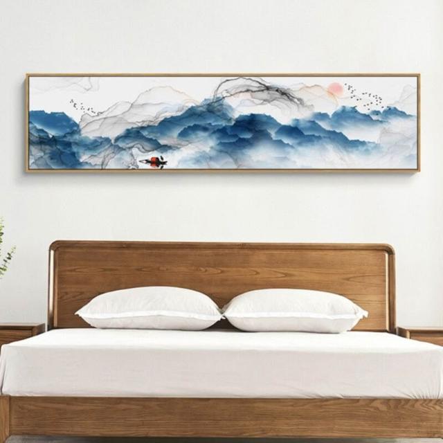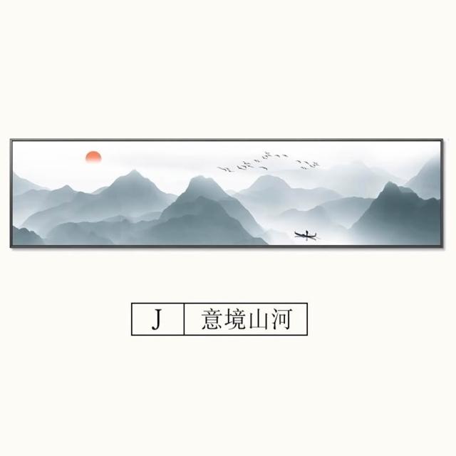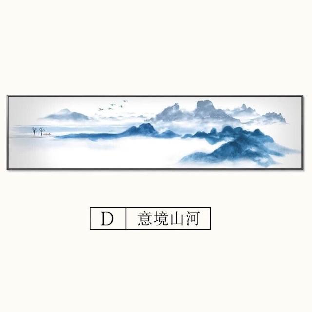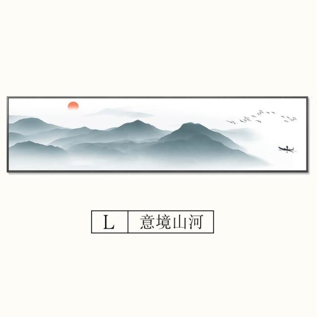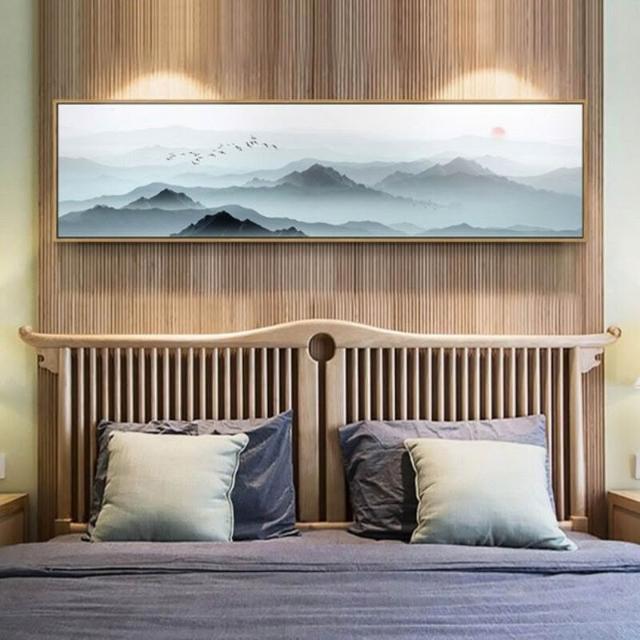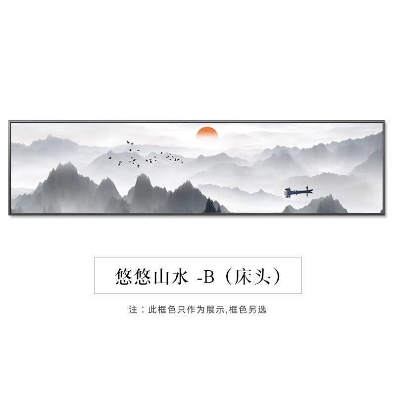 中式臥室床頭水墨裝飾畫 新中式禪意書房客廳掛畫 酒店客房壁畫 橫式山水風景畫